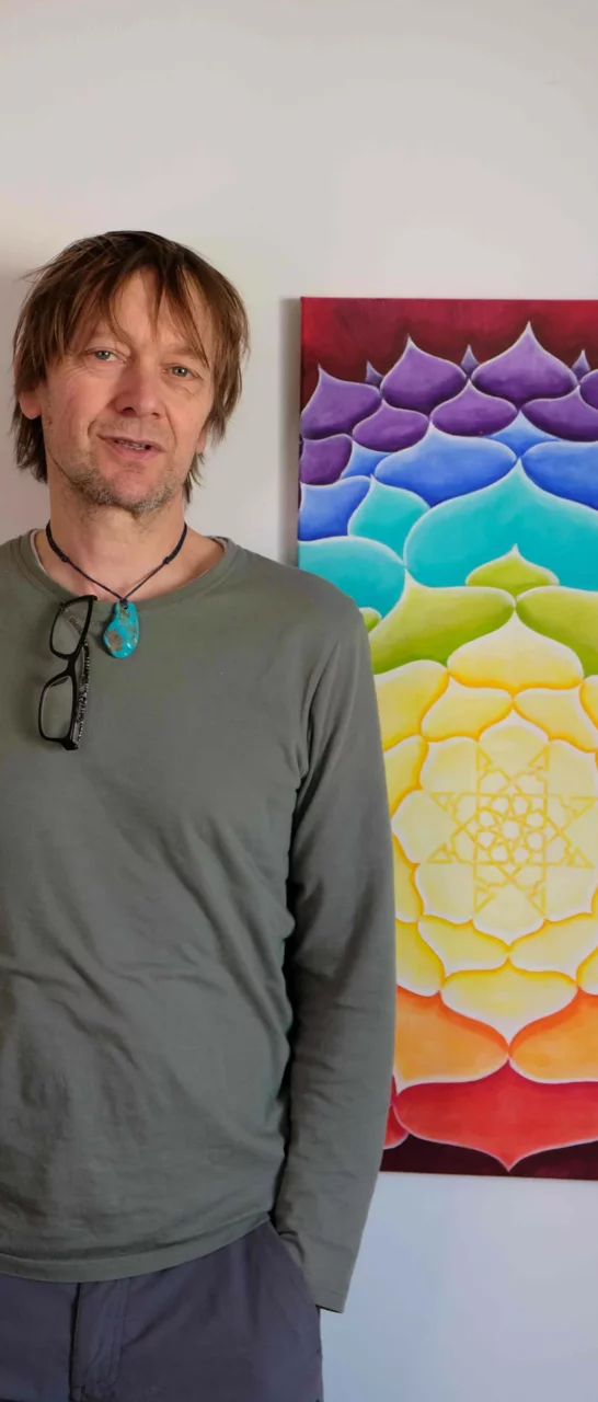 Durch den Kontakt zum Kundalini-Yoga habe ich mich intensiev mit Mandalas und Chakren beschäftigt. In meinen Mandalas ist Raum für Mantren oder Affirmationen. Manchmal ist ganz klar, was ich da schreiben muss, manchmal ist das Sache desjenigen, den das Mandala ruft.